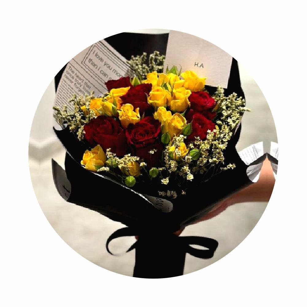 باقة ورد جوري أصفر مع جبسيليا – إشراقة أنيقة ولمسة فرح